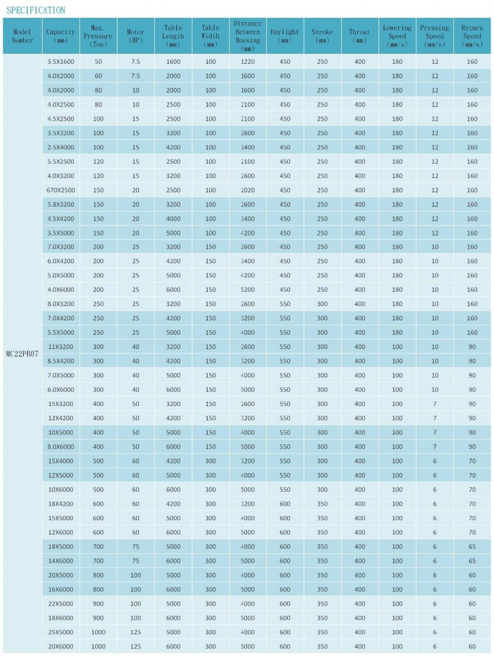 | আইটেম নম্বর | MC22PB07 | শক্তি | হাইড্রোলিক |
