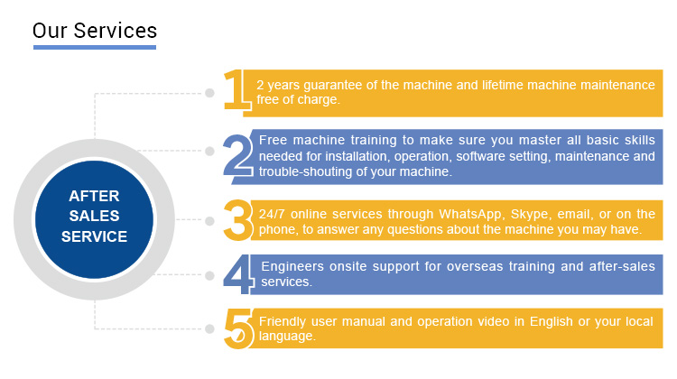 উত্তর: মেশিনের কিছু সমস্যা থাকলে আমরা মেশিনের ওয়ারেন্টি সময়কালে বিনামূল্যে যন্ত্রাংশ সরবরাহ করব। যদিও আমরা বিনামূল্যে জীবন দীর্ঘ বিক্রয়োত্তর সেবা সরবরাহ করি। তাই কোন সন্দেহ, শুধু আমাদের জানান, আমরা আপনাকে সমাধান দিতে হবে.